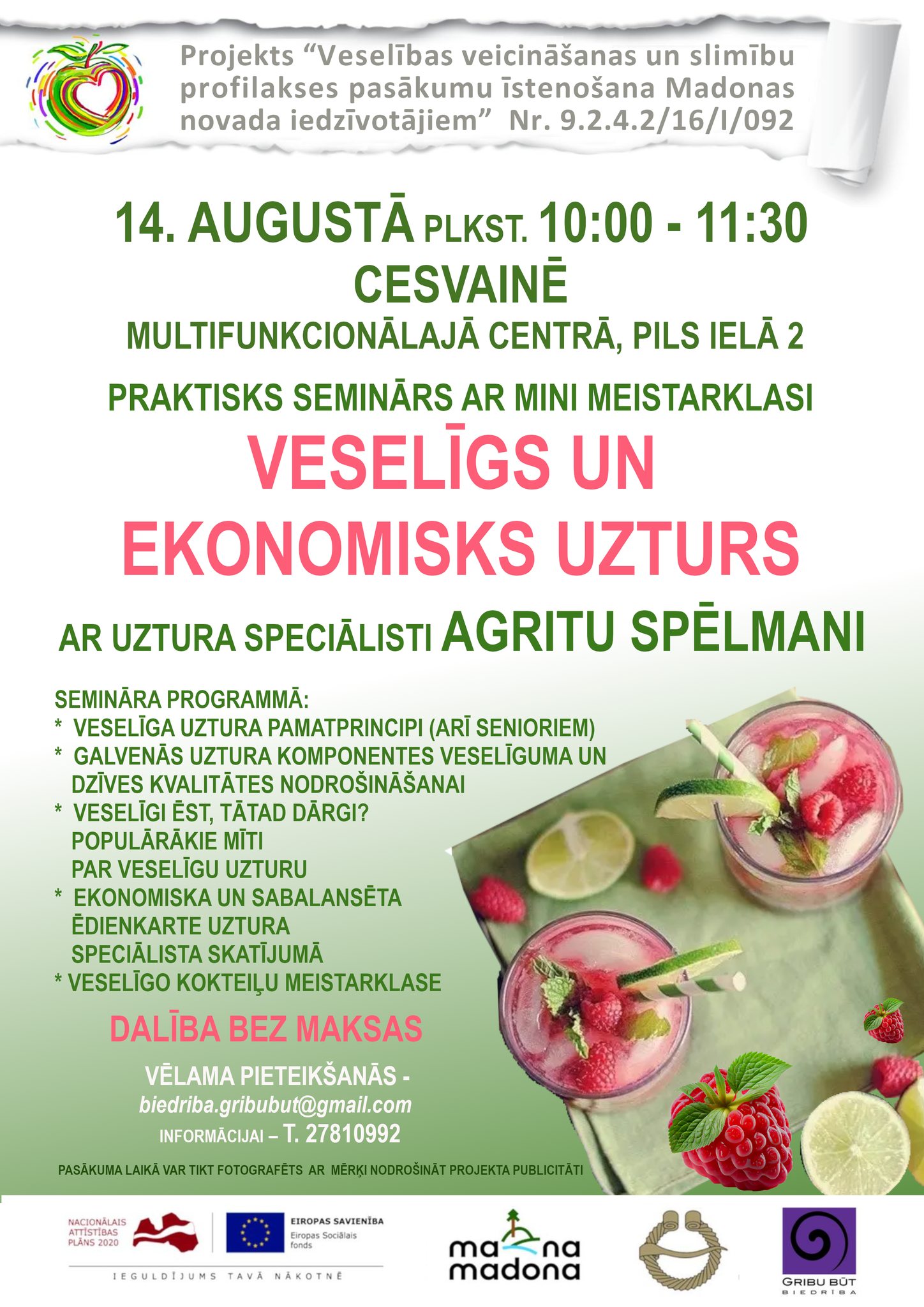 Piedāvājam praktisko semināru ar mini uztura meistarklasi 14. augustā Cesvainē.