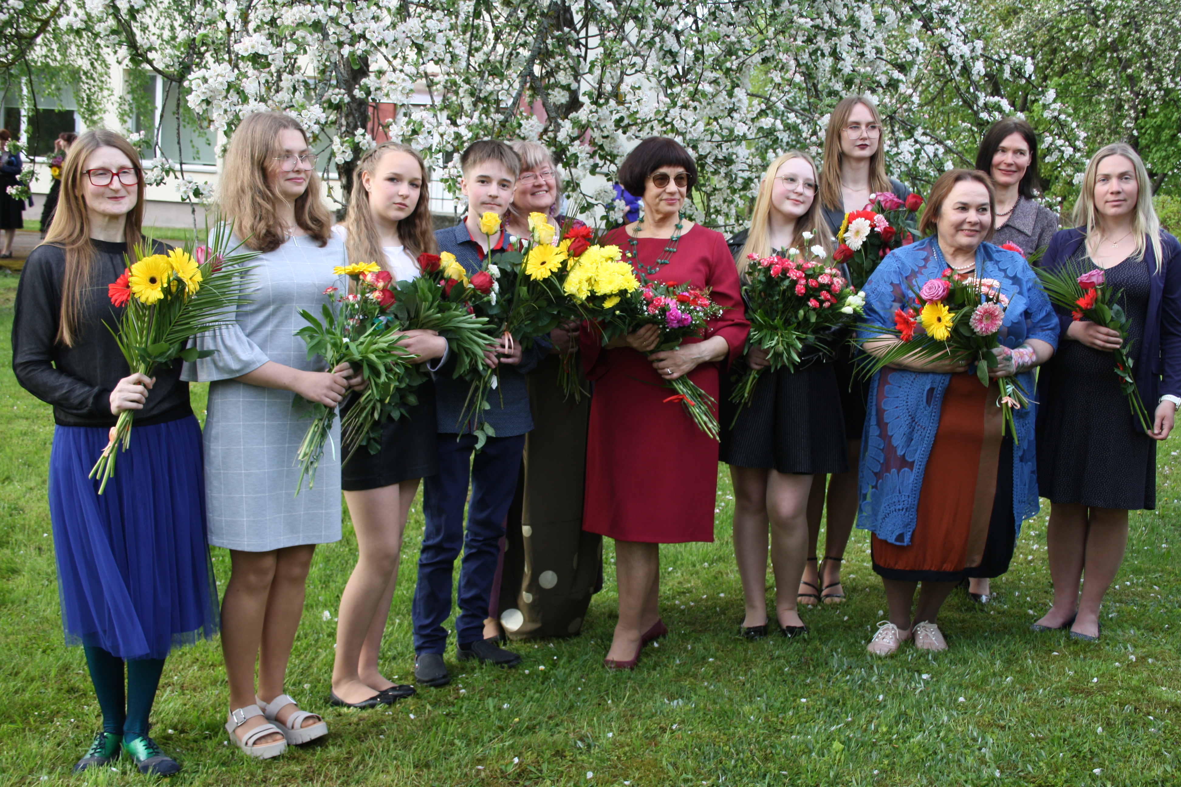 5att. Jaunā dzīves posmā iesoļo 11 Cesvaines vidusskolas 12. klases absolventi. Lai veiksmīgs turpmākais ceļš izglītības un profesionālajā jomā. Klases audzinātāja Sarma Kurme. Jāņa Zladeja foto