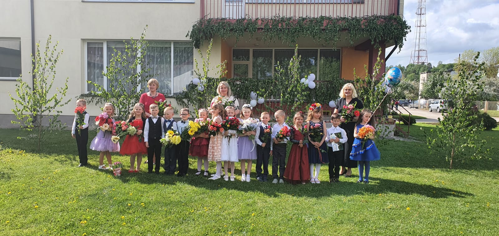 3att. “Smaržo meijas, ceriņi un kreimenītes…. Klāt izlaidumu laiks! 27. maijā ”Brīnumzemē”, savai pirmajai izglītības iestādei ardievas teica 19 smaidīgi grupas “Skudriņa” bērni. ŠĪ absolventiem bija svētku diena, jo viņi baudīja skaistus mirkļus kopā ar grupu “Spārīte” un “Bitīte” bērniem un skolotājām Oļu Priedīti, Teklu Ozoliņu un Allu Isačenko, kopīgi dejojot pirmo deju “Pietupties” un dziedot dziesmu “Mazie bērniņi”. Grupas “Bizmārīte” skolotājas Sandra Ruduka un Jolanta Koroļčuka iejutās rūķu lomās un atsauca bērnu atmiņā baltos Ziemassvētkus, kur katrs vecāks savam bērnam darināja īpašu rūķu tērpu un kopīgi gāja rotaļdeju "Ŗūķīts iet pa taciņu”. Grupas “Taurenītis ”bērni un skolotāja Ilga Rumpe veltīja absolventiem dzejoli “Uz skolu” un katrs saņēma skolotāju gādīgu roku gatavotu puķi. Skaistus un stiprus vārdu absolventiem veltīja arī iestādes vadītāja Skaidrīte Aveniņa, kura katram uzdāvināja grāmatu “Izkrāso Cesvaini”. Prieks par vecākiem, vecvecākiem, brāļiem un māsām, ar kuriem bija satikšanās lielajā zālē. Paldies mūzikas skolotājai Irēnai Lecītei par iemācītajām dejām un dziesmām! Krāsainiem notikumiem bagātu, saulainu un siltu vasaru vēlot,” grupas “Skudriņa “ skolotājas Sandra Āriņa un Jana Medniece. Foto no Janas Mednieces personiskā arhīva