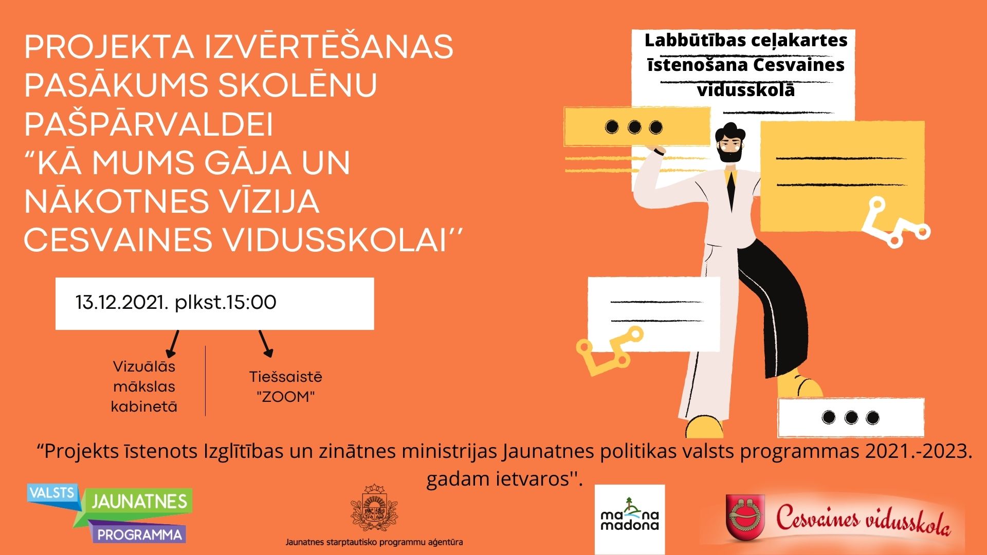 Labbūtības ceļakartes īstenošana Cesvaines vidusskolā tuvojas noslēgumam. Pirmdien, plkst.15:00 projekta izvērtēšanas pasākums skolēnu pašpārvaldei kopā ar skolas administrāciju.