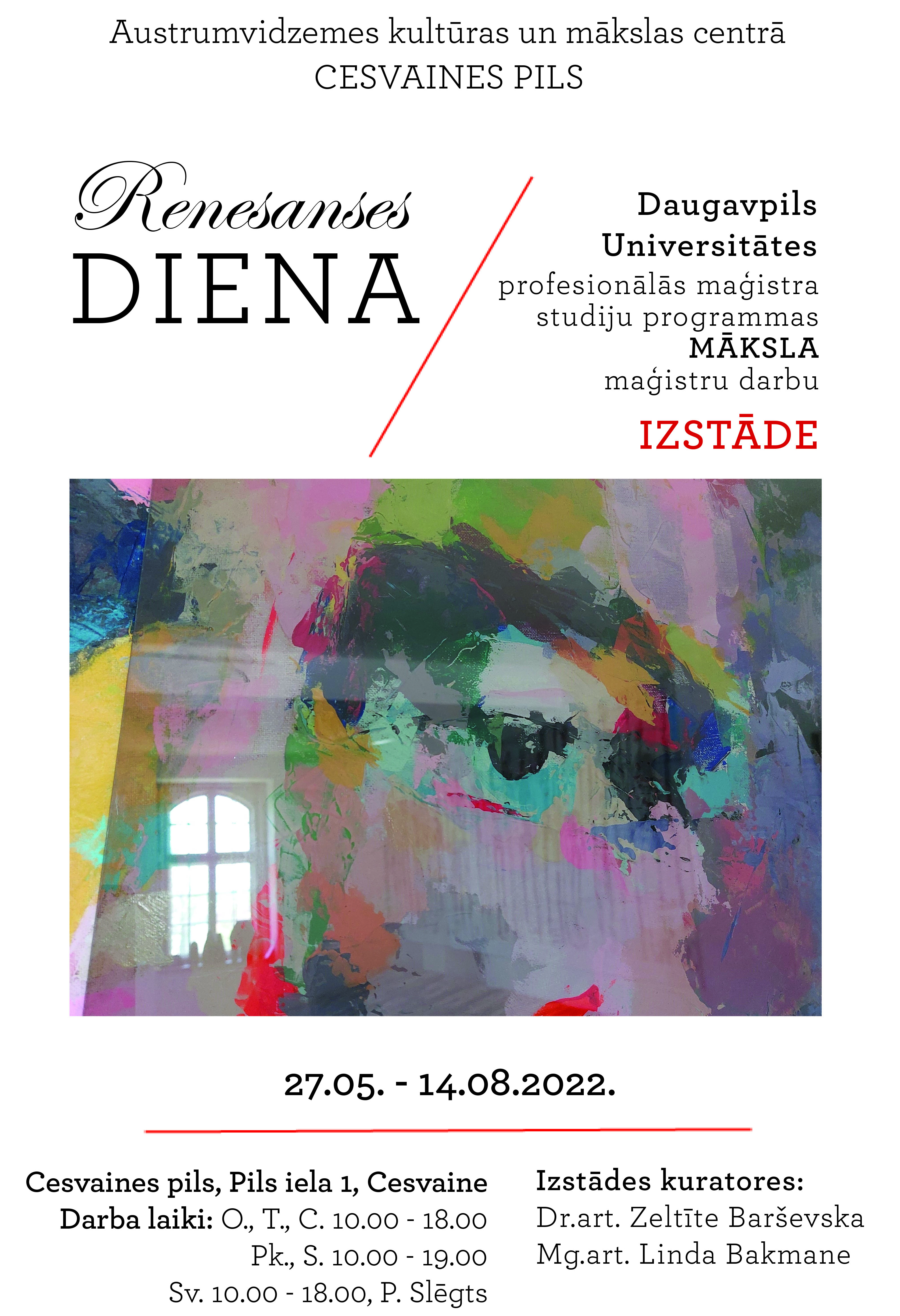 Š.g. 27. maijā Cesvaines pilī (Pils iela 1, Cesvaine, Madonas novads) tiek atklāta Daugavpils Universitātes (DU) profesionālās maģistra studiju programmas (PMSP) Māksla maģistra darbu izstāde RENESANSES DIENA.
